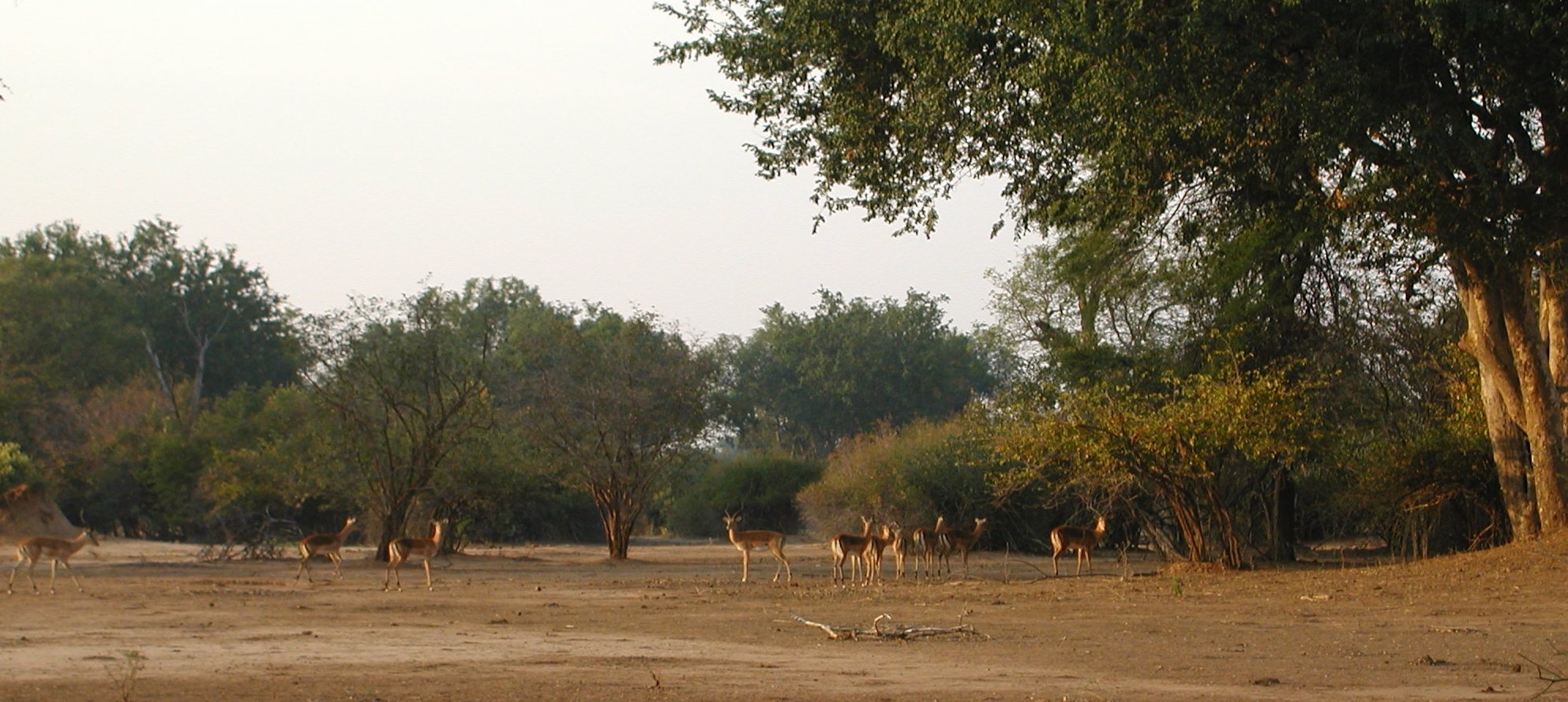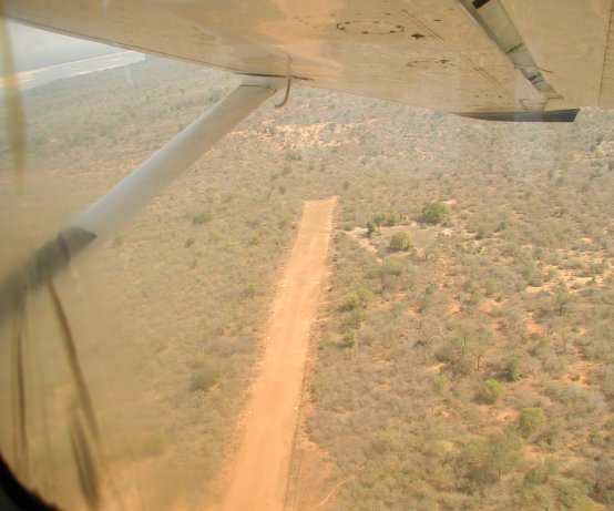Above the...yes, airport... at the national park. First sighting of the Zambezi River is in the upper left of the pic. Funny, we couldn't locate the terminal or the control tower...and we didn't have to take off our shoes!