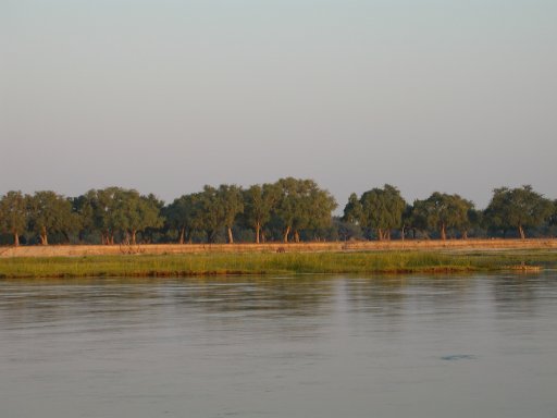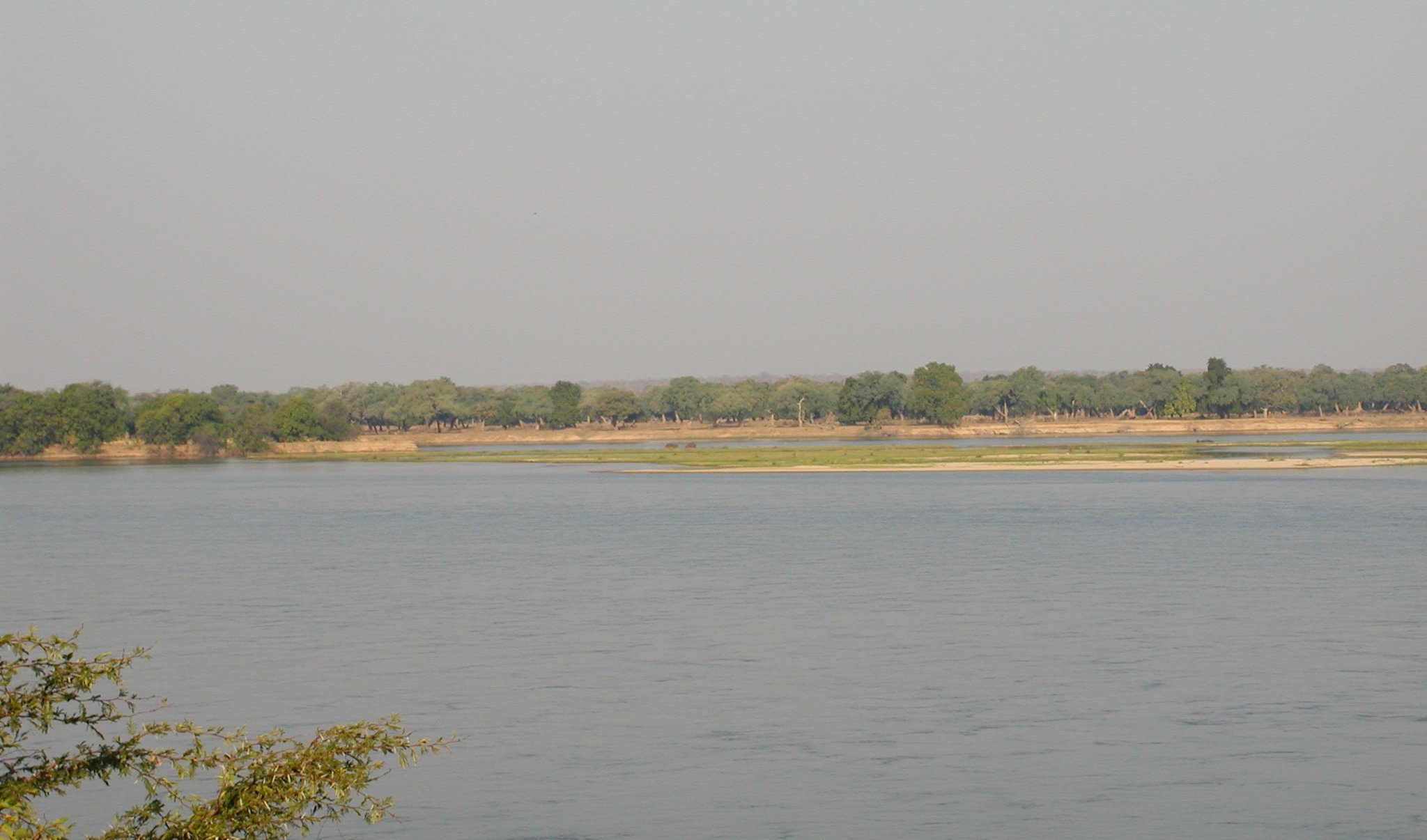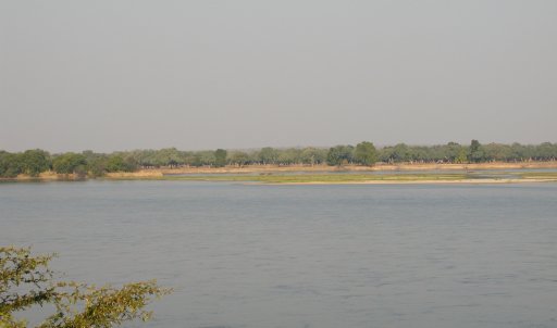 From our tent, our view of the river across to Zimbabwe. Click to discern a few ever-present hippos on the island......
