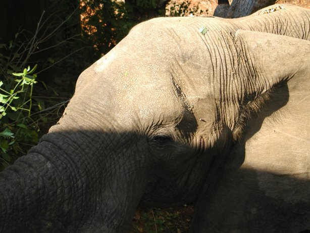 He stayed all afternoon, fortunately in a less excited state. Seen here just down an embankment from the the camp's lodge,where he re-located after our tent-side display and smack during the World Cup Final. Didn't know elephants are into soccer...