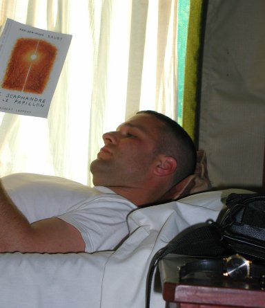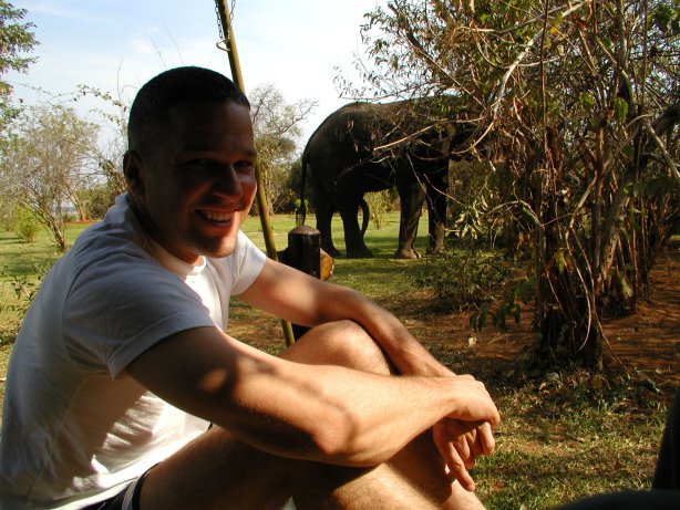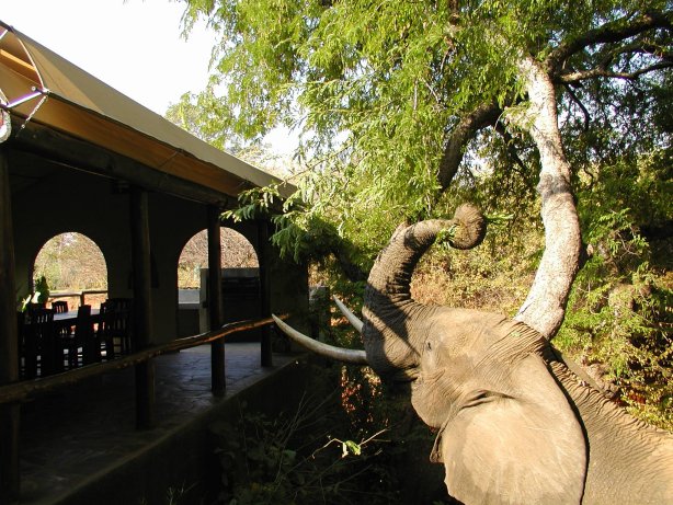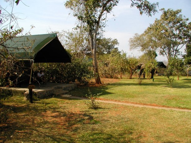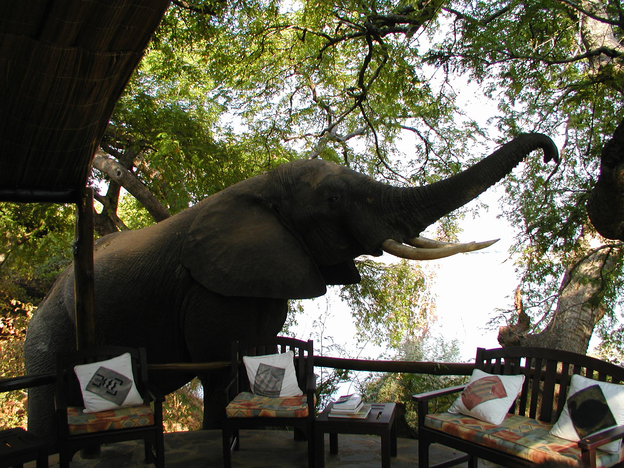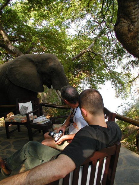 ...who, while he read and snoozed one afternoon, didn't even notice the sound of chomping right outside the tent. When the elephants came to camp, it was the humans who changed their plans.