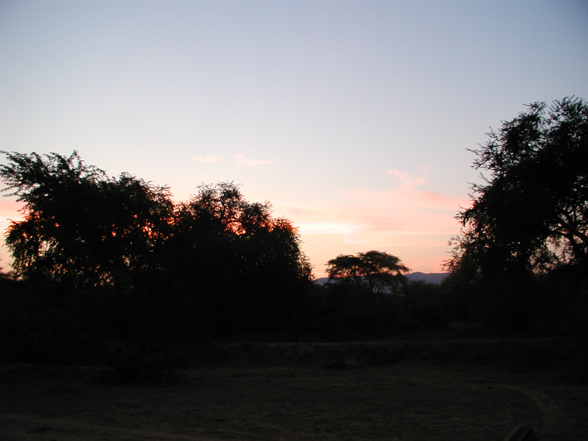 Another incredible African sunset. July 1, 2002, our final evening at the park. Where next? Stay tuned.
