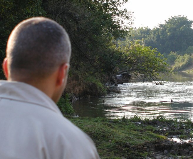 Christened by Paul as the "Tim Flirts with Hippo" shot. This hippo played hard to get and got away. Figures.