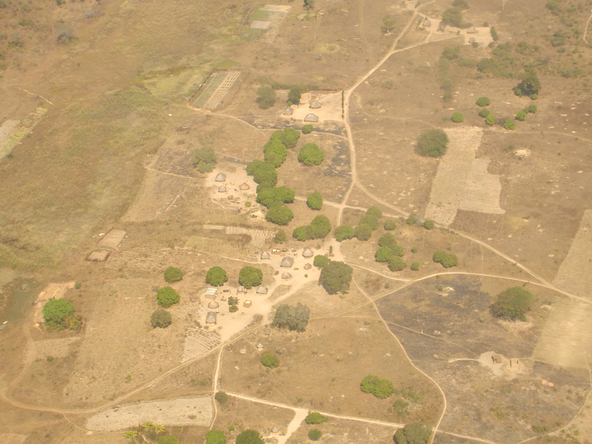 From the altitude of our flight, even Zambia's smallest villages weren't so small. Click on image for close-up.