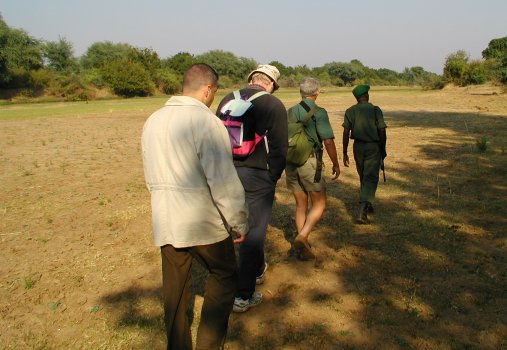 A walking safari gave a better appreciation of the park's smaller life forms. Rod (in shorts), a former croc hunter in Mozambique, was our guide. What's hanging off the park ranger's shoulder tells you that we weren't just worried about the plants and birds...No worries, PETA, it's for protection only.