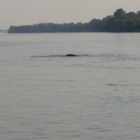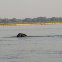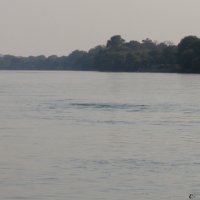 Find the hippo and the croc (click for a closer view). No shortage of these along the Zambezi. By the way, that's Zimbabwe in the background.